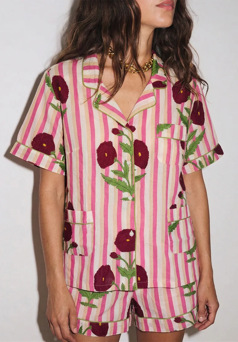 Le pyjama Gia est parfait pour celles qui aiment allier confort et style. Le haut prend une allure très tendance porté sur un jean et des baskets, tandis que l’ensemble reste idéal pour les soirées cocooning.