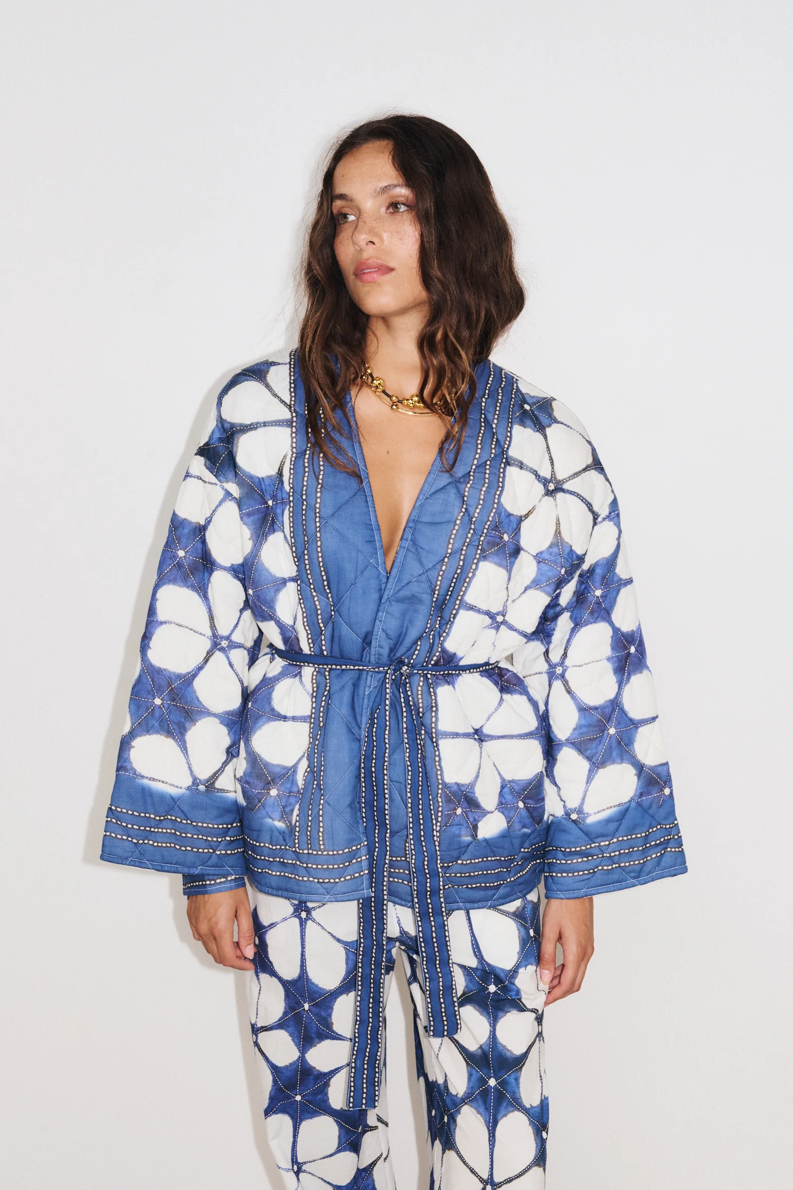 La veste Lotus est une piĂšce incontournable de mi-saison, pensĂ©e pour accompagner le quotidien avec style. Sa coupe courte matelassĂ©e et son encolure kimono crĂ©ent une silhouette moderne et enveloppante. Les bandes imprimĂ©es placĂ©es de part et dâautre de lâencolure, sur les manches et le bas du corps, apportent un dĂ©tail graphique fort. Vendue avec sa ceinture, elle sâadapte Ă toutes les envies.