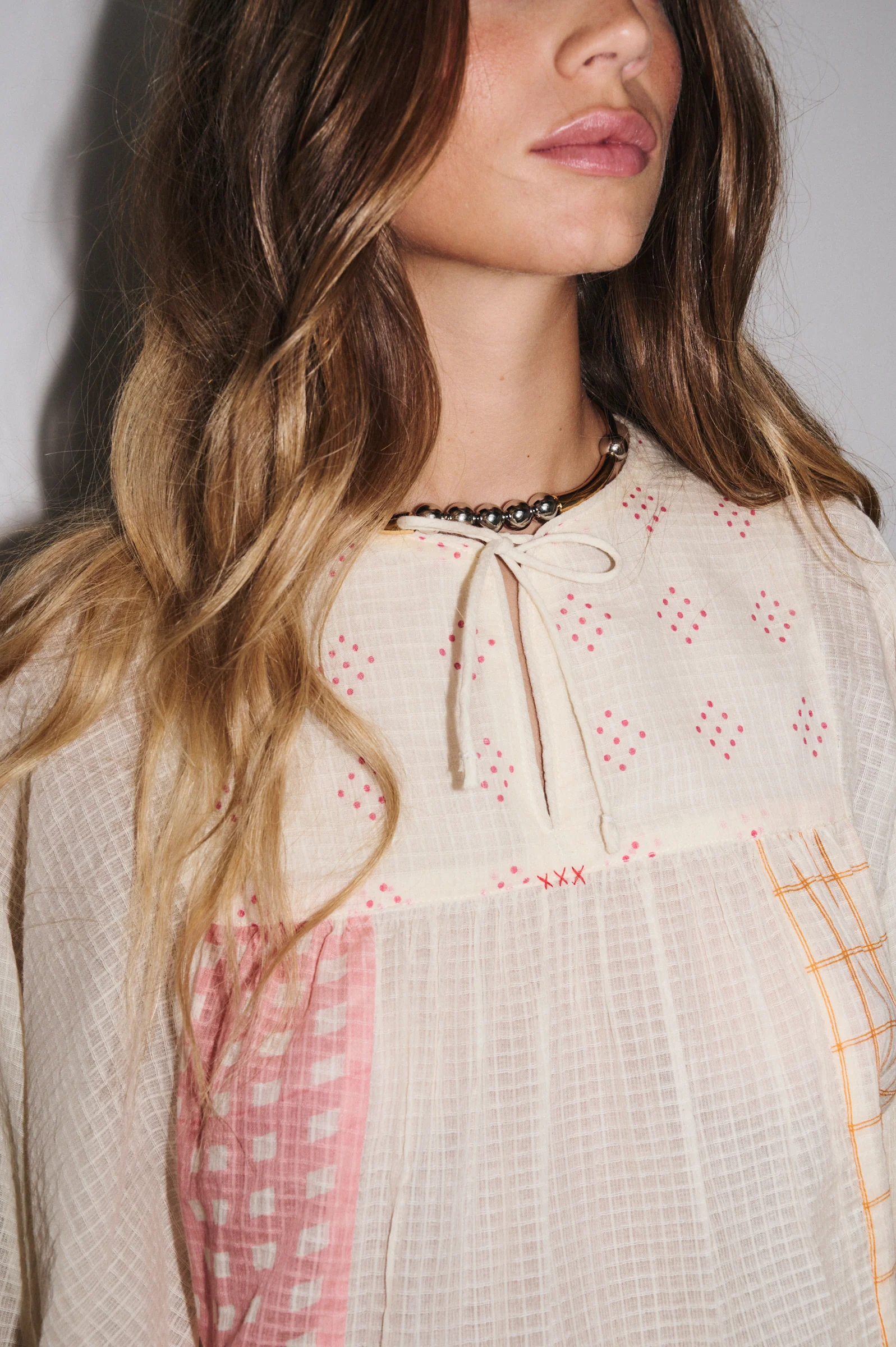 Associez-la Ă un pantalon ajustĂ© ou une jupe pour Ă©quilibrer le volume. Ses dĂ©tails dĂ©licats peuvent ĂȘtre mis en valeur avec des accessoires sobres et lĂ©gers.