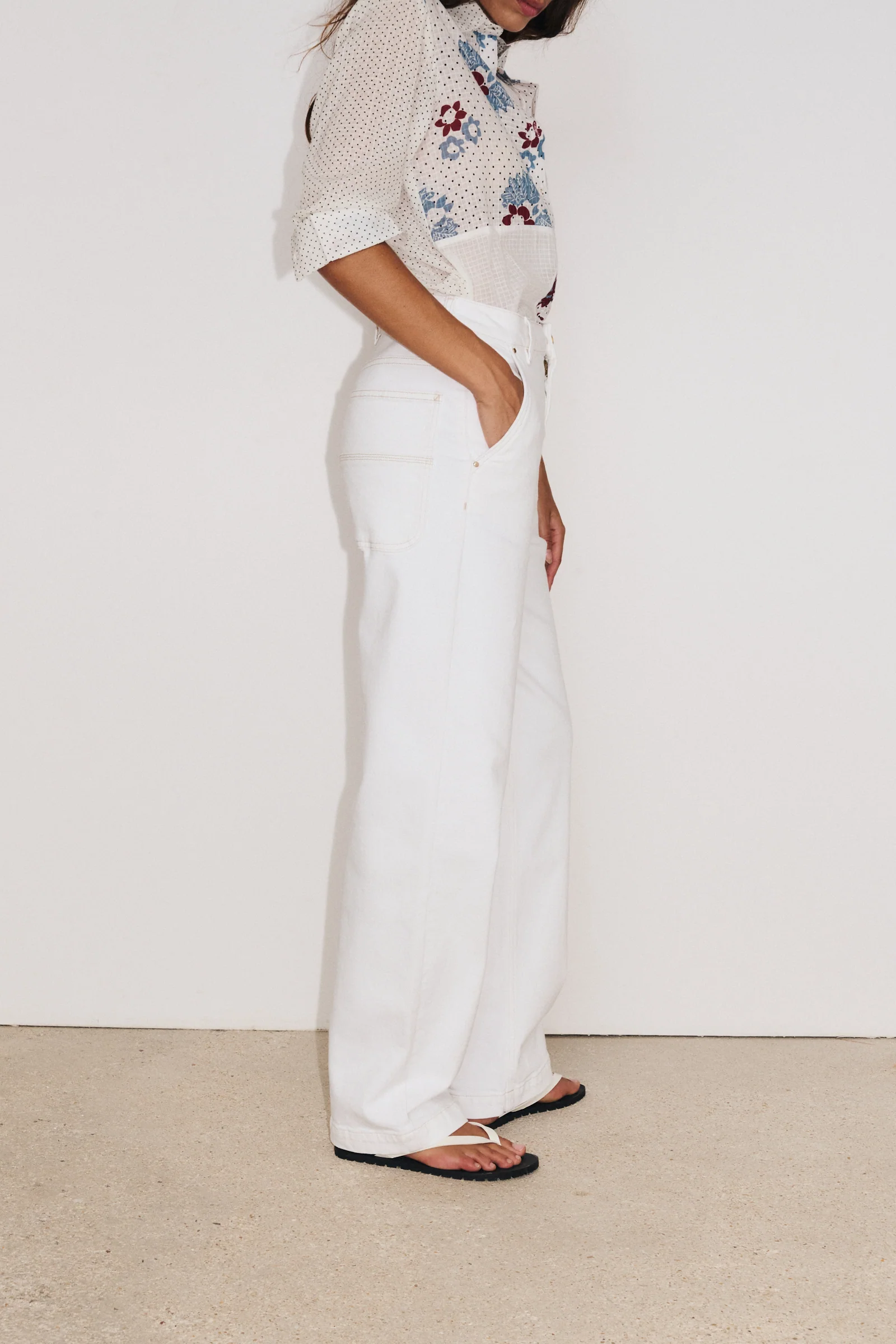 Ce pantalon Worker Juliette sâinspire du style carpenter avec une coupe droite structurĂ©e, alliant praticitĂ© et modernitĂ©. Ă lâavant, il conserve la coupe classique dâun pantalon 5 poches, tandis que lâarriĂšre se distingue par des poches plaquĂ©es, apportant une touche de caractĂšre. Son esprit utilitaire se marie parfaitement avec un haut ultra fĂ©minin pour crĂ©er un contraste Ă©lĂ©gant.