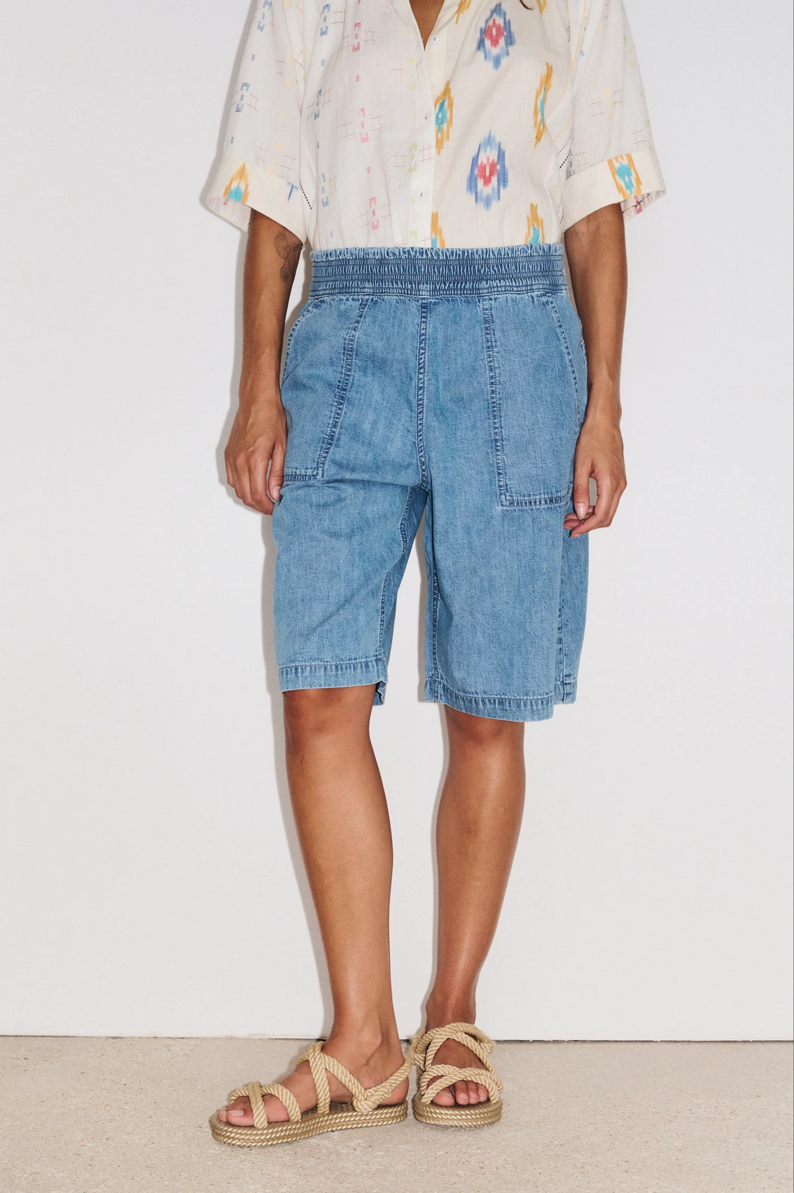 Portez-le avec un top léger ou une chemise rentrée pour structurer la silhouette. Des sandales ou des baskets viendront compléter un look décontracté et estival, idéal pour toutes les occasions.