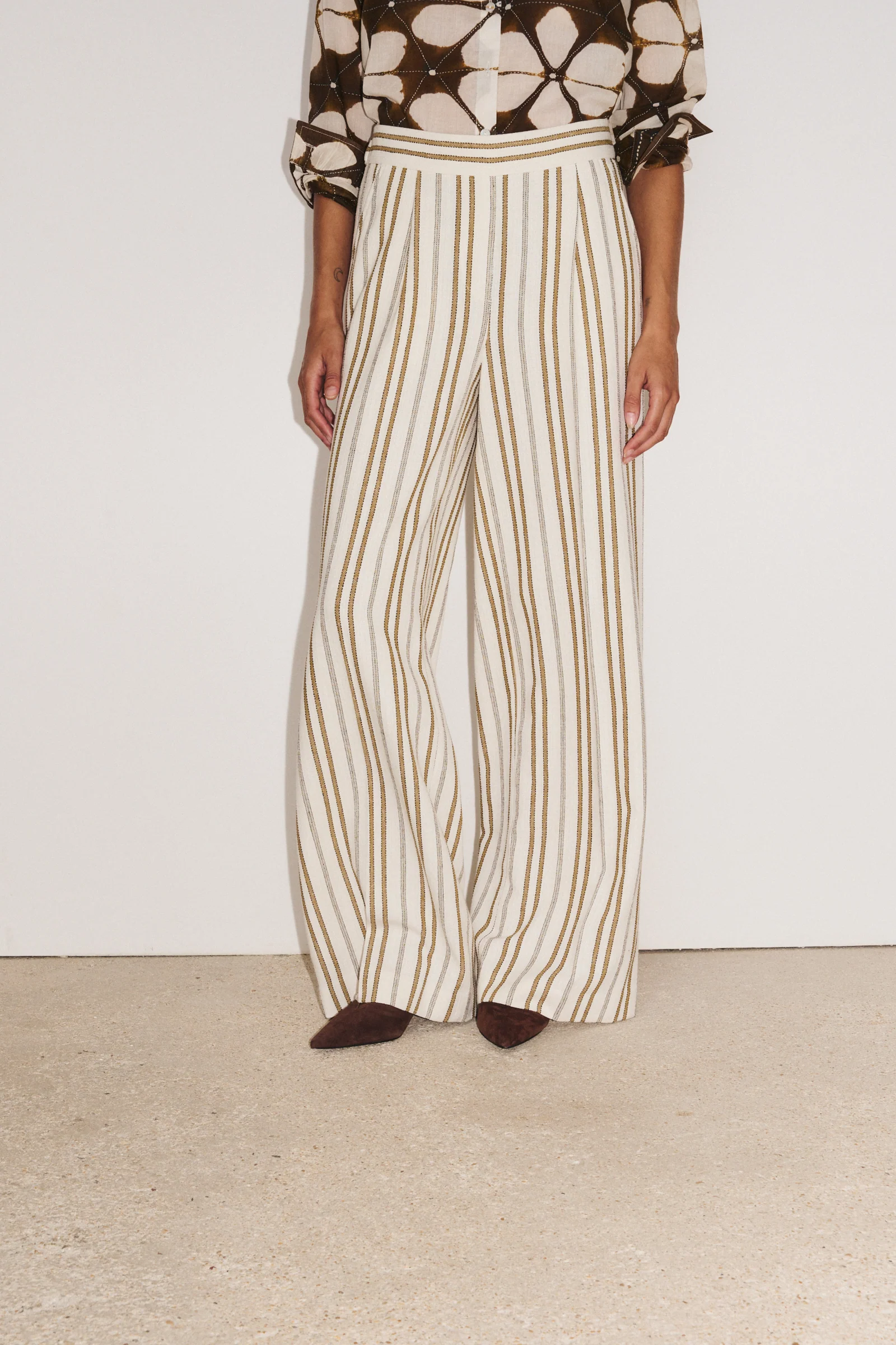 Le pantalon Panama allie savoir-faire français et style intemporel. Son jacquard italien dans un camaïeu naturel de brin apporte une touche sophistiquée à vos looks, tout en garantissant confort et aisance au quotidien.